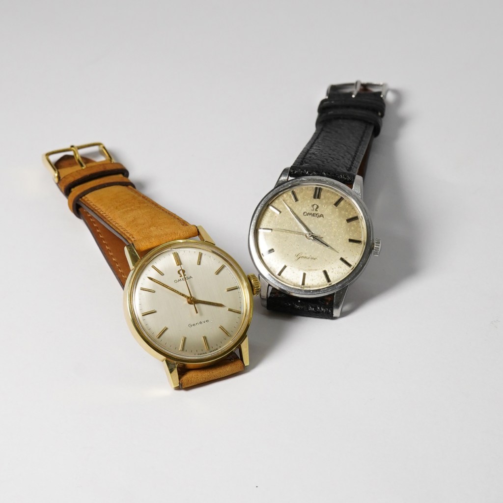 We are proud to offer this stunning vintage Omega Geneve watch for sale. This Geneve comes complete with its original inner & outer Omega boxes, sales receipt and Omega warranty dated April 1969 and is a Full Set. 34mm round gold plated case with oyster sunburst dial with gold baton hour markers and hands. Powered by the Omega manual calibre 601 movement and it comes fitted on an original Omega expanding bracelet.