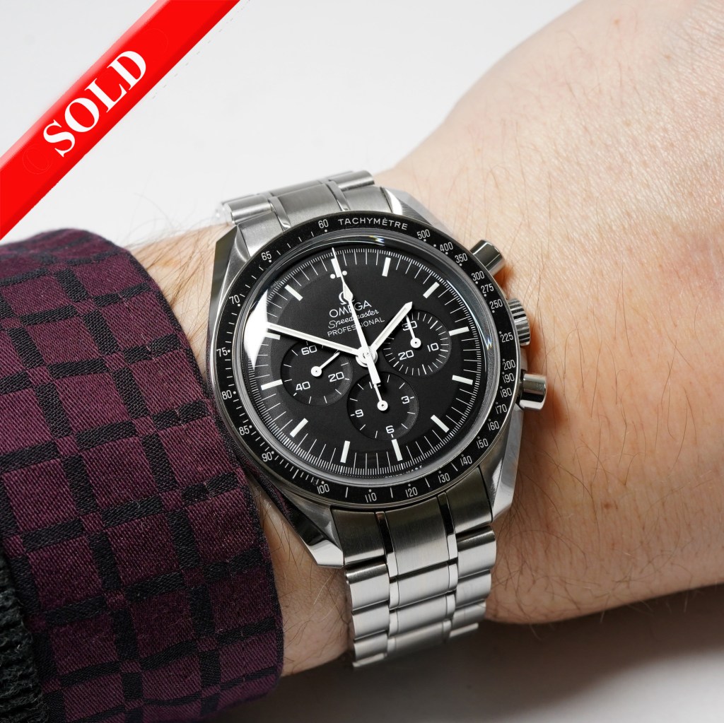 We are proud to present this iconic Omega Speedmaster Moonwatch for sale. Originally launched in 1957 and ever-present in the Omega catalogue since (in one version or another) this is a stunning example of the classic which is now discontinued in this reference 311.30.42.30.01.005. Manual wind calibre 1861 powers this watch with a 48-hour power reserve and measuring 42mm on the wrist. Complete with full ‘Mission Flight’ case with additional straps, loupe and paperweight. Also original sales receipt dated July 2022 and under Omega manufacturers warranty until July 2027! A must-have piece for any Omega enthusiast.